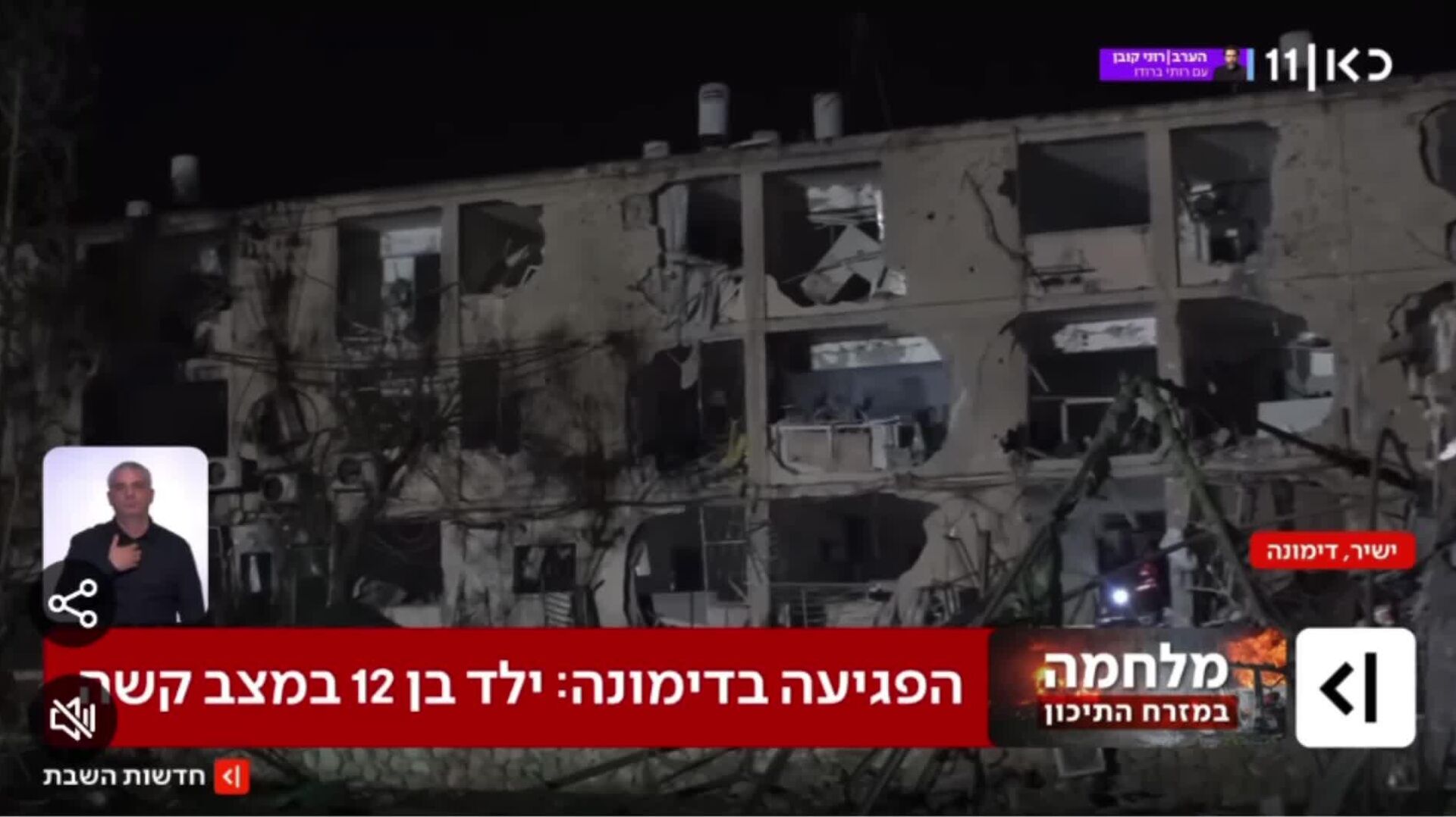 خسارات گسترده در اثر حمله موشکی اخیر ایران به دیمونا در جنوب اسرائیل