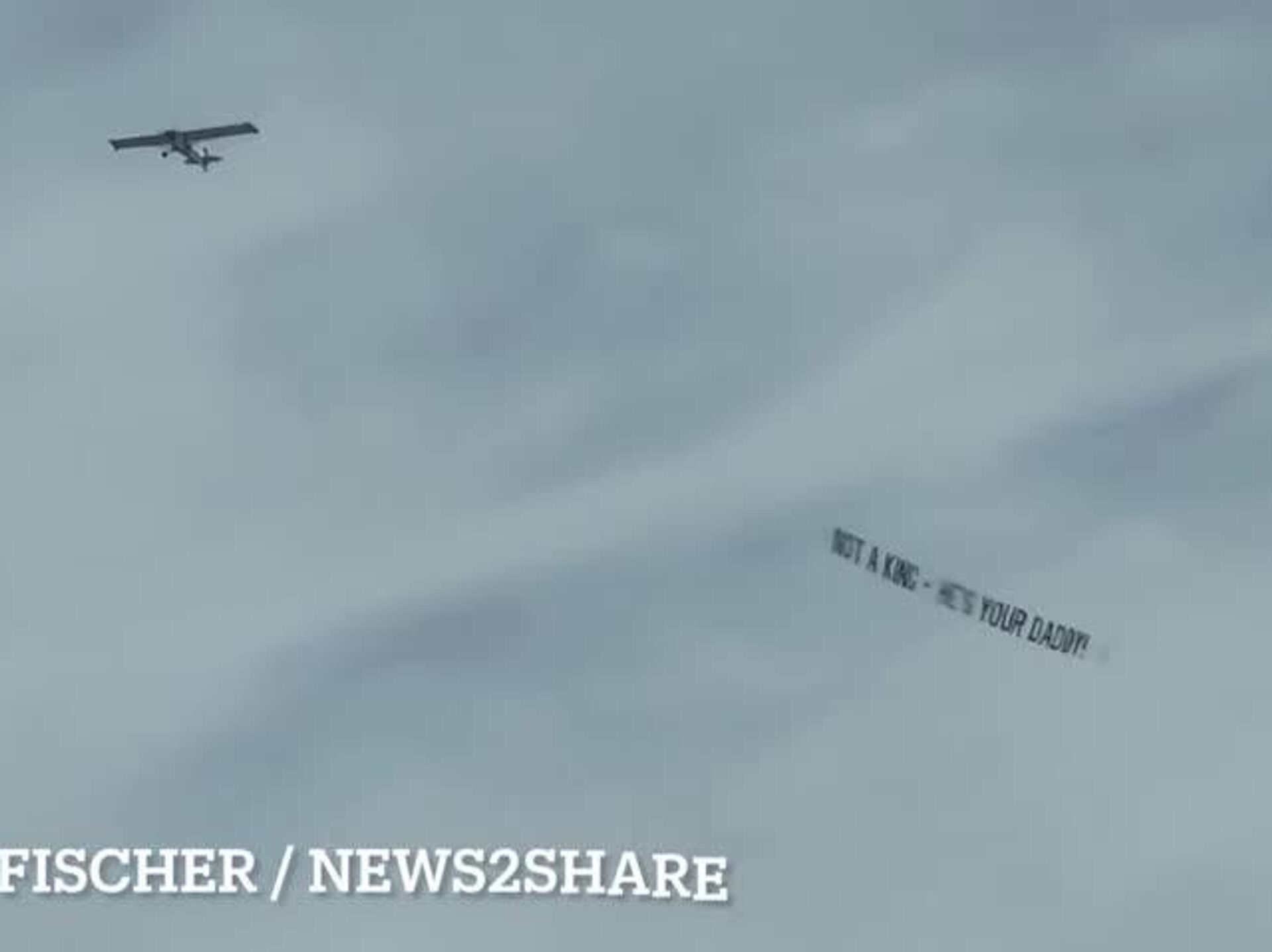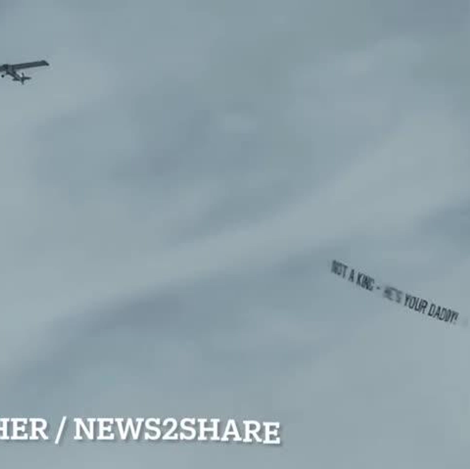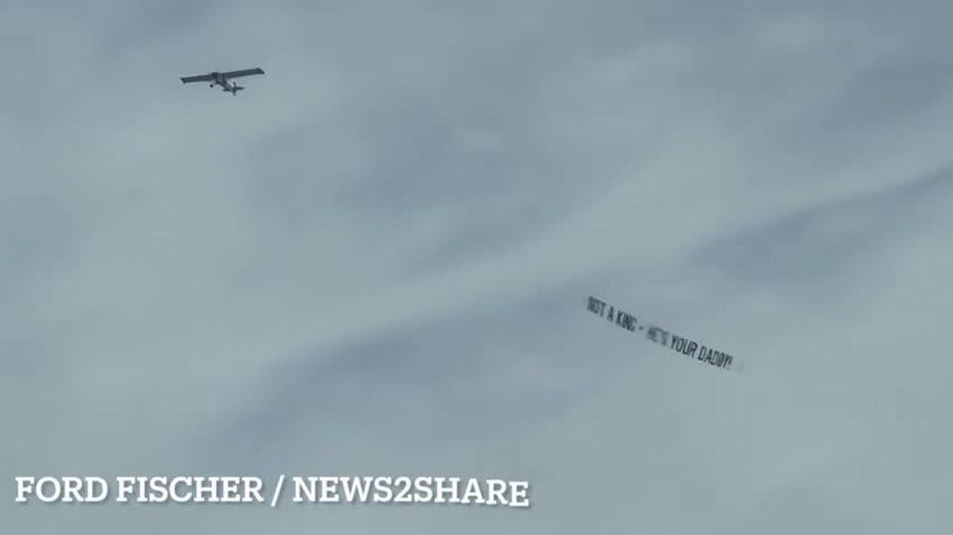 بنری با نوشته « پادشاه نیست - بابای شماست!»، در آسمان بالای سر معترضان در لسآنجلس ظاهر شد