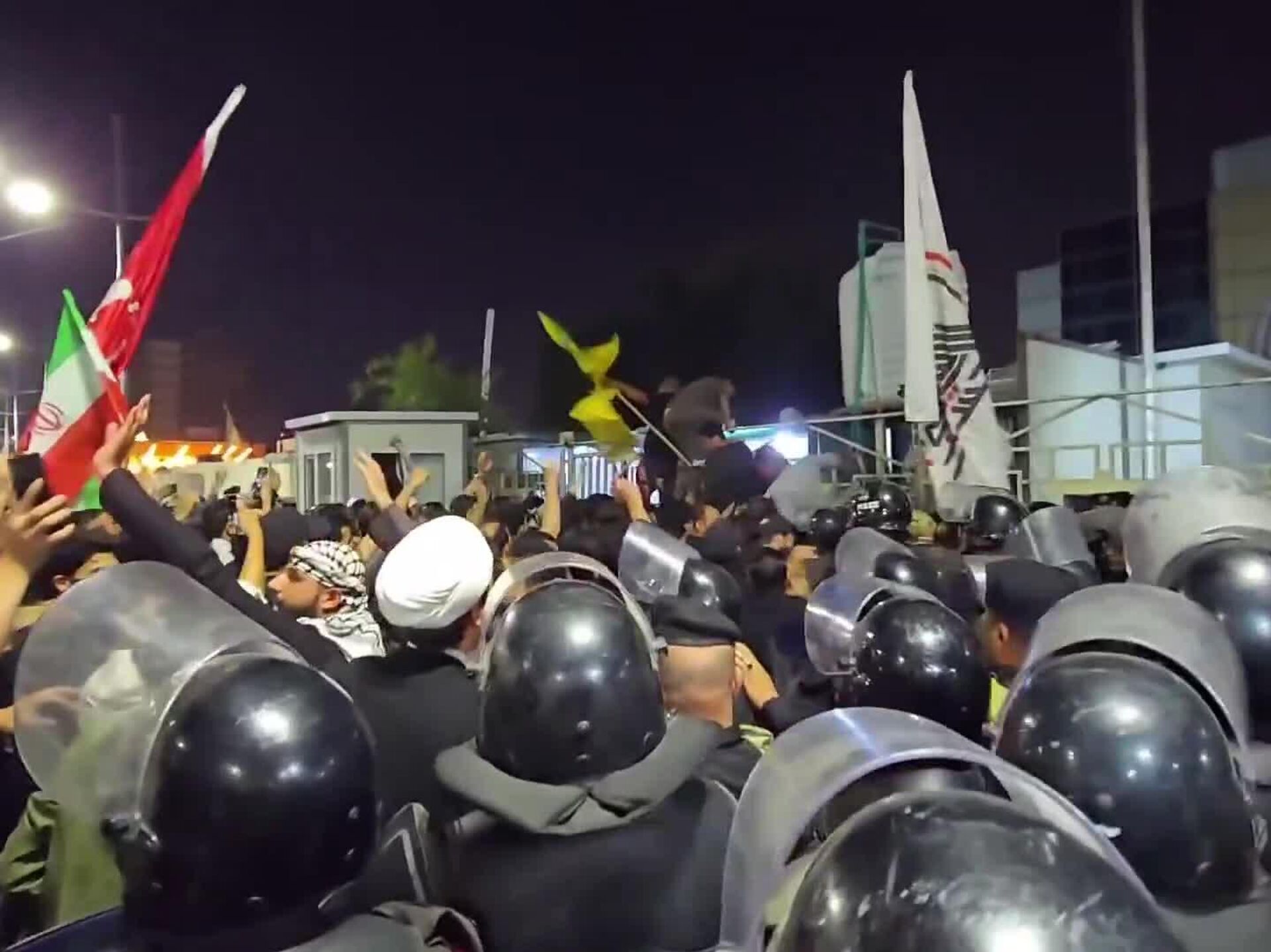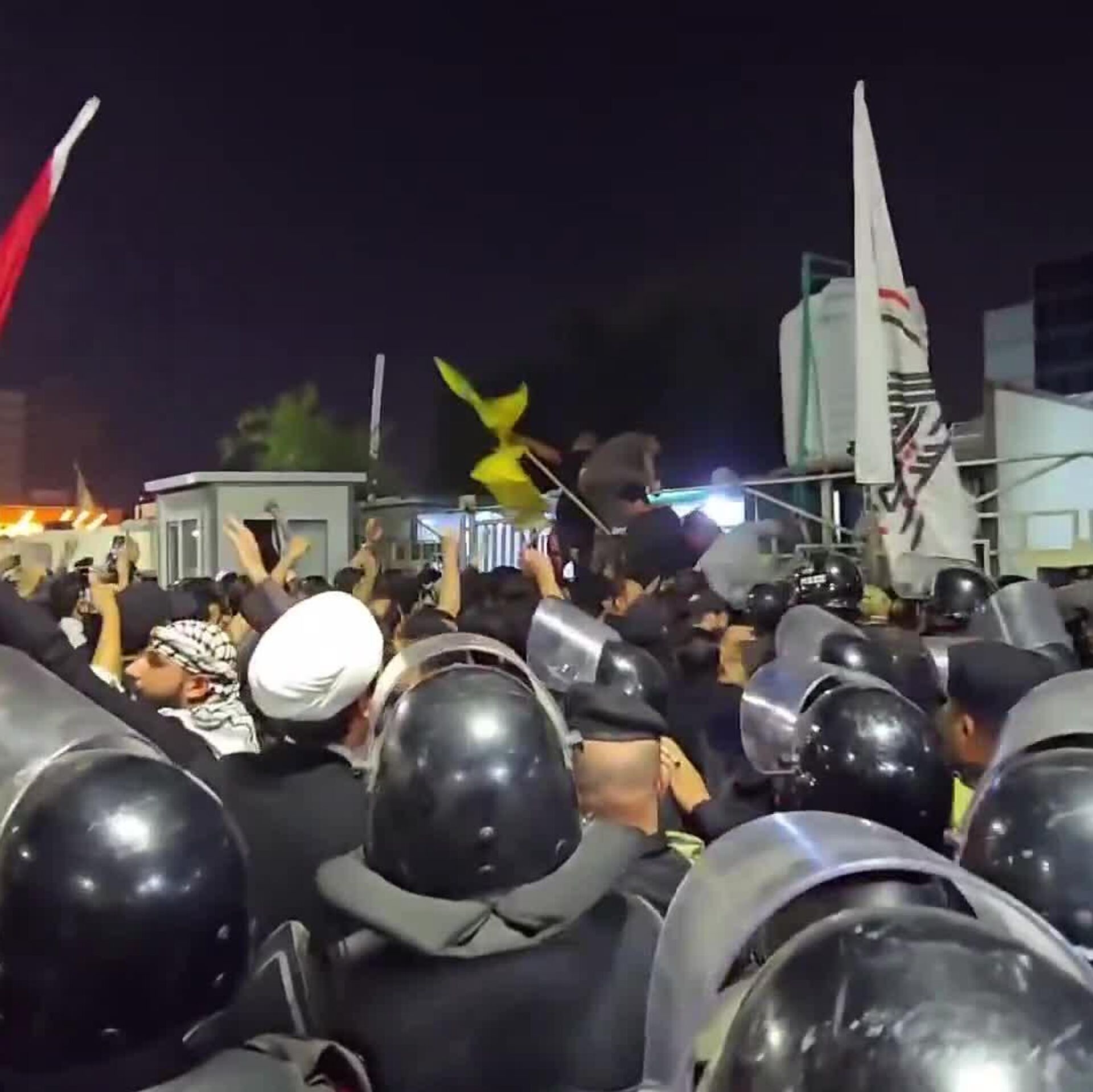 حمله معترضان به کنسولگری کویت در شهر بصره عراق این اعتراضات پس از انتشار خبر اصابت موشک از کویت به یک ساختمان مسکونی در جنوب عراق و کشته شدن سه نفر آغاز شد. ما را در سایت و تلگرام اسپوتنیک دنبال کنید Sputnik Iran | Telegram