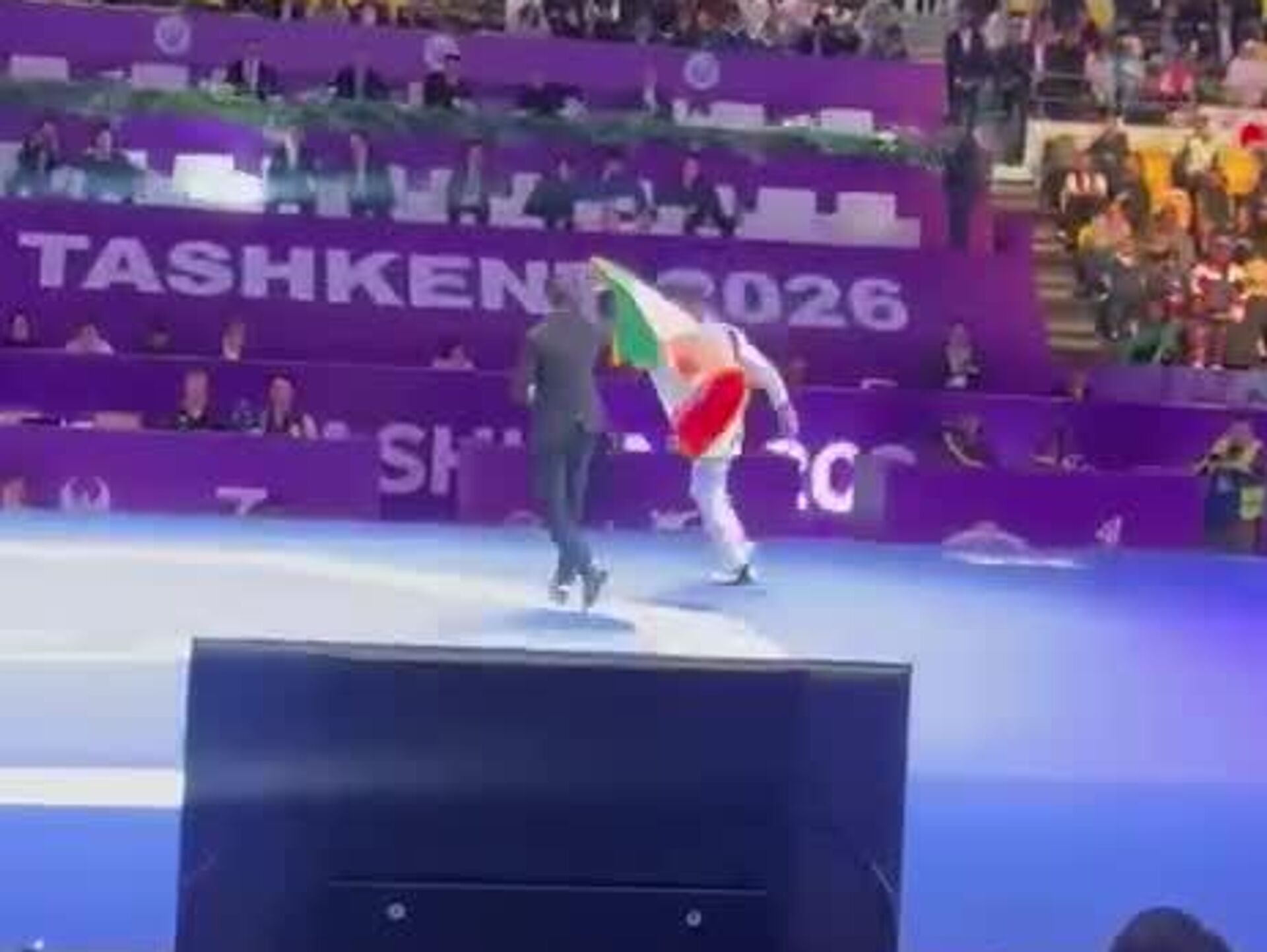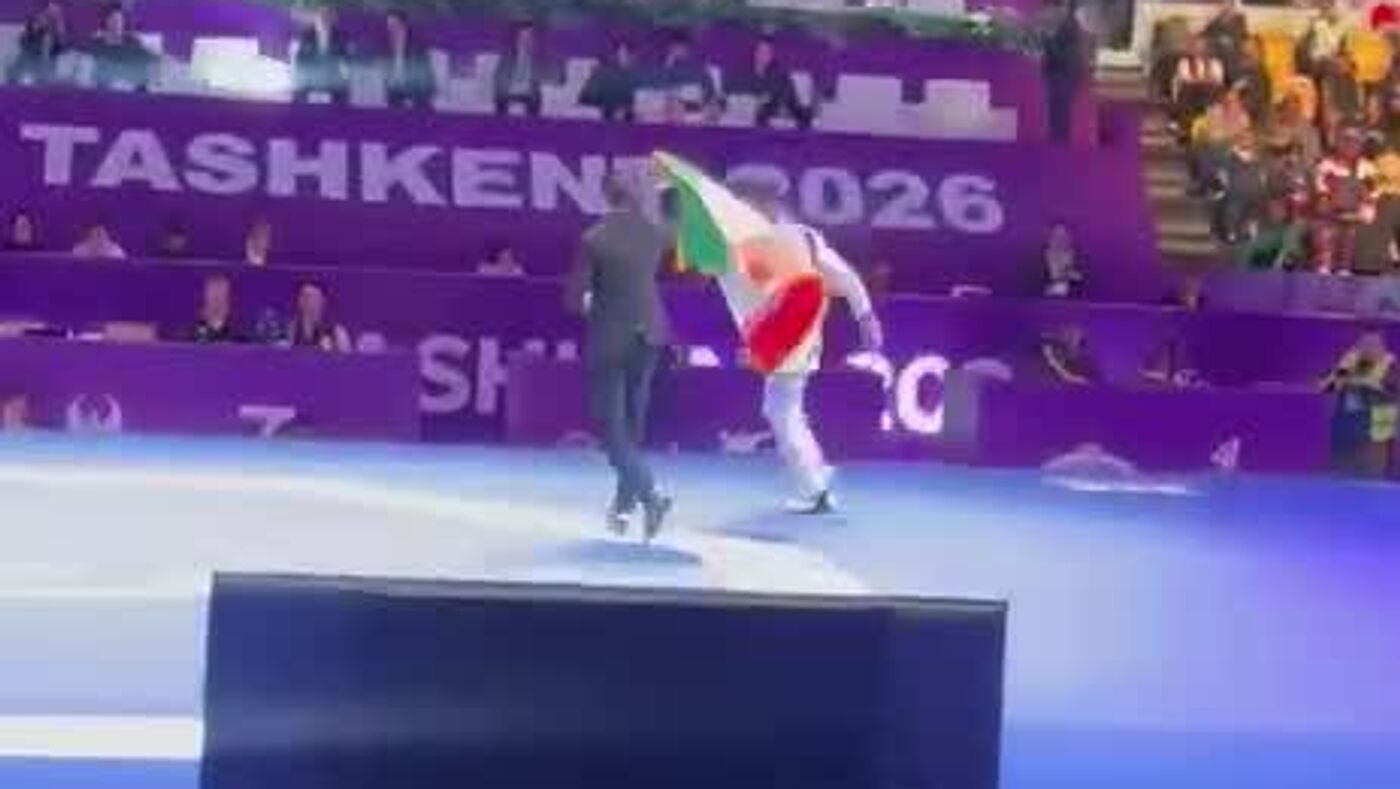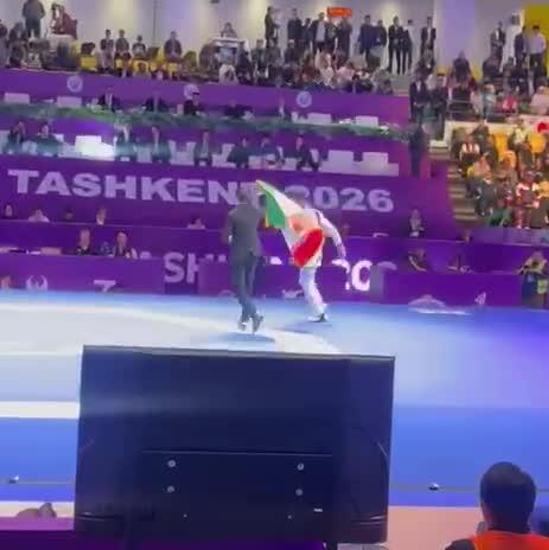 20:32 16.04.2026 (بروز رسانی شده: 20:40 16.04.2026) پارسا هوشیار پس از کسب مدال طلا، دور افتخاری با پرچم ایران برگزار کرد