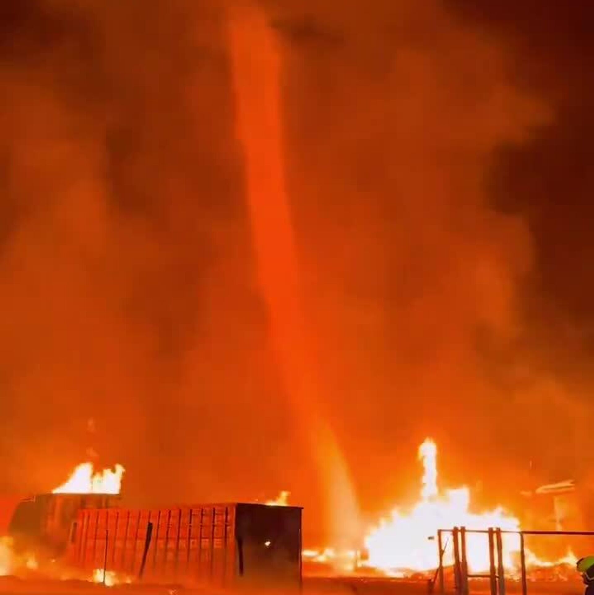 گردابی غیرمعمول که در طول تلاشهای آتش نشانی در اوندا، استان کاستلیون، بر فراز پالتهای در حال سوختن تشکیل شد. چنین "گردبادهای آتشین" زمانی رخ میدهند که گرما، باد و جریانهای هوای چرخان در یک نقطه واحد همگرا میشوند.