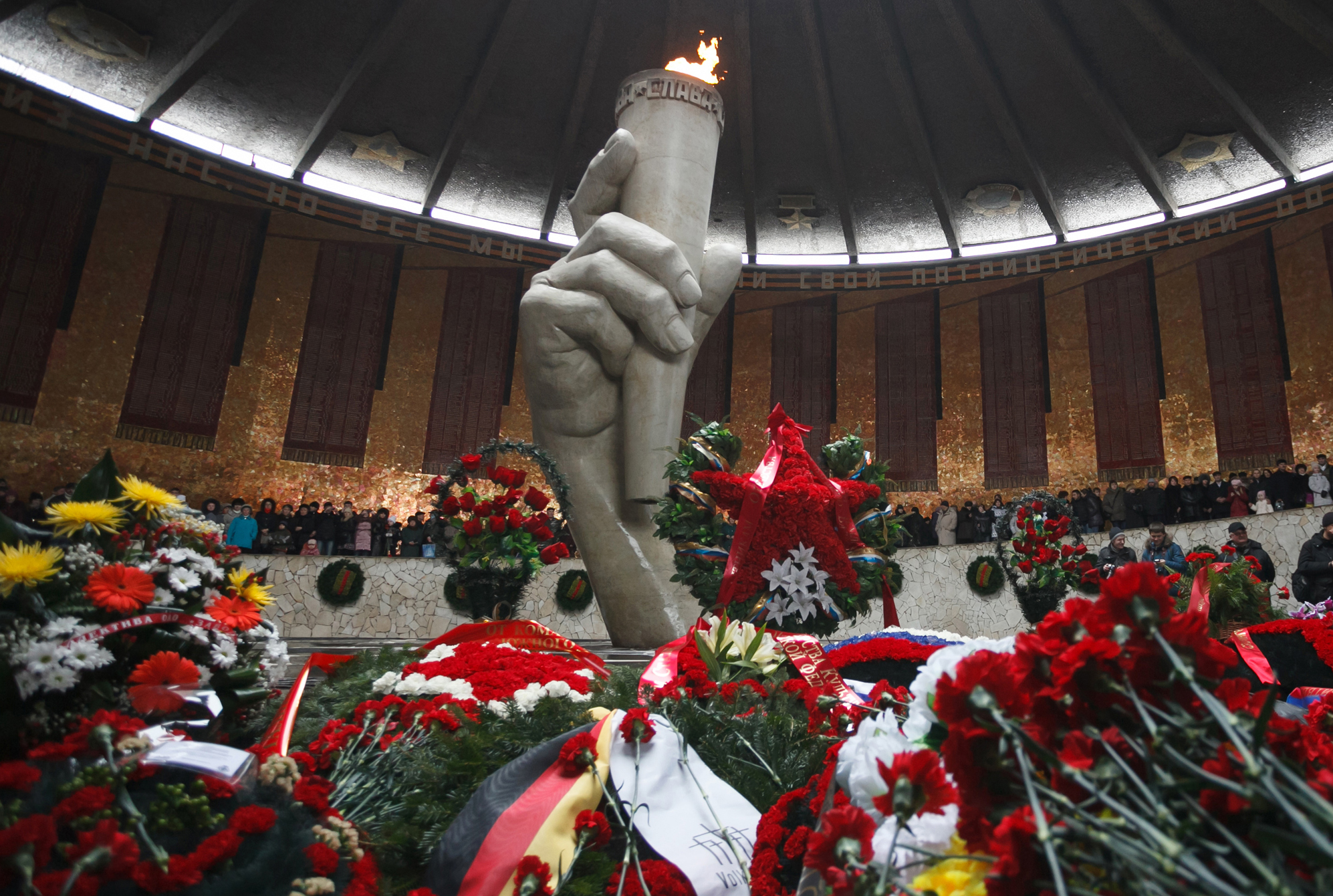 ©Sputnik/Kirill Braga/ دسته های گل در تالار افتخارات نظامی در مامایف کورگان در ولگاگراد در جشن 72 مین سالگرد پیروزی نیروهای شوروی در نبرد استالینگراد